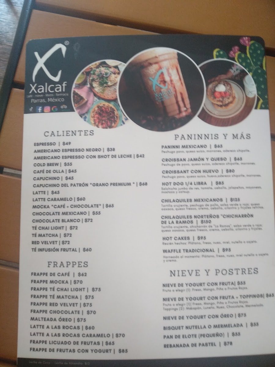 Welcome to XALCAF CAFÉ, a hidden gem located in the heart of Parras de la Fuente, Coah., Mexico. This charming café offers a delightful menu that caters to diverse tastes, featuring an array of sandwiches, hearty tortas, and delicious postres. The offerings don’t stop there; indulge in their refreshing helados, and signature café helado and frappes, crafted with organic ingredients to ensure quality and flavor in every sip.